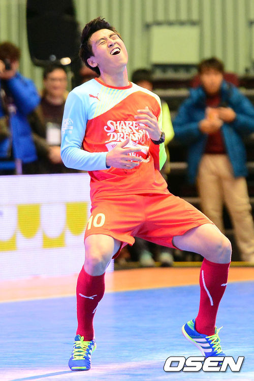 29일 오후 서울 잠실실내체육관에서 열린 홍명보 자선축구경기 'Share the Dream Football Match 2013'에서 구자철이 세레모니를 하고 있다.
