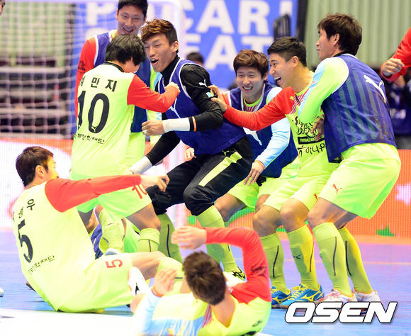 29일 오후 서울 잠실실내체육관에서 열린 홍명보 자선축구경기 'Share the Dream Football Match 2013'에서 여민지가 골을 넣고 세레모니를 하고 있다.