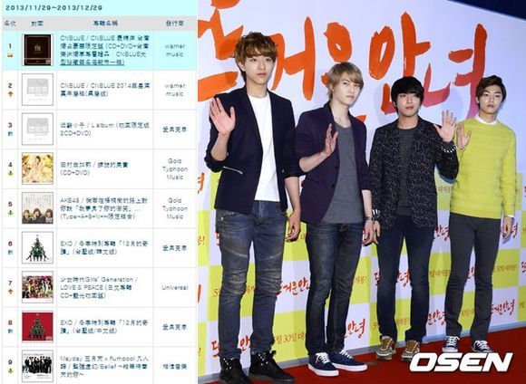 오는 1월 3일 대만 정식발매를 시작하는 해당 음반은 선 주문만으로 월간 차트 1위를 휩쓸며 씨엔블루의 대만 인기를 입증했다. 동 차트 2위에는 씨엔블루 2014 시즌 그리팅이 랭크 되어 있어 눈길을 끈다.