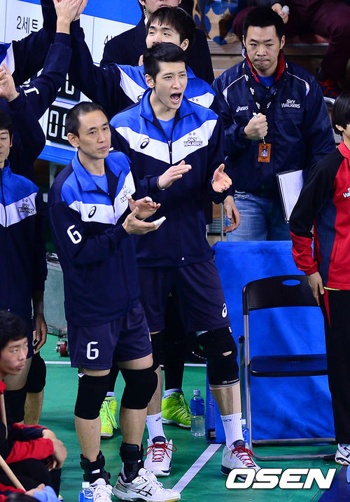 1세트 현대캐피탈 문성민이 경기를 바라보고 있다.