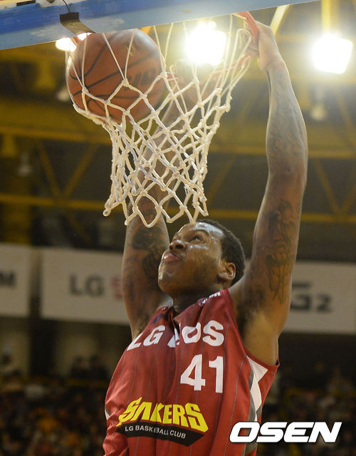 4쿼터, LG 제퍼슨이 덩크슛을 하고 있다.