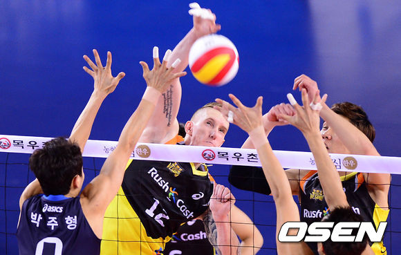 러시앤캐시는 지난 26일 3라운드 우리카드와 경기에서 세트스코어 3-0(26-24, 25-18, 25-18)으로 승리했다. 이날 승리로 시즌 3승째를 거둔 러시앤캐시는 3승 9패(승점 12)를 거두며 두 자릿수 승점을 만들어냈다./sunday@osen.co.kr