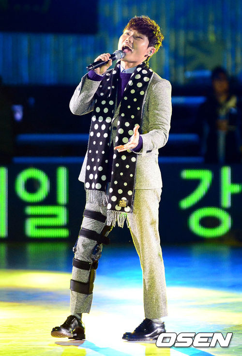 29일 오후 서울 잠실실내체육관에서 열린 홍명보 자선축구경기 'Share the Dream Football Match 2013' 경기 종료 후 김범수가 축하공연을 펼치고 있다.