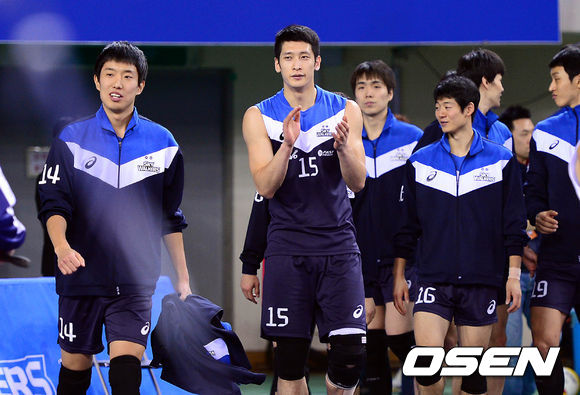 경기 종료 후 현대캐피탈 문성민이 동료들과 승리의 기쁨을 나누고 있다./sunday@osen.co.kr