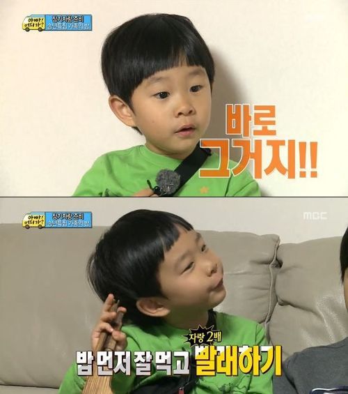 김성주의 아들 김민율이 자신의 장기자랑으로 빨래와 밥 잘 먹기 등을 어필해 웃음을 자아냈다.