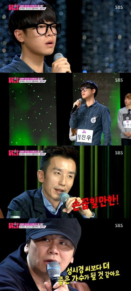 양현석은 29일 방송된 'K팝스타3' 상중하 오디션에서 중 그룹 멤버 정진우의 무대를 본 후 "개인적인 소감이다. 성시경보다 좋은 가수가 될 것 같다"며 감탄한 모습을 보였다. 그는 "감정선이 좋다. 끝음 처리도 좋았다"며 만족해 했다.