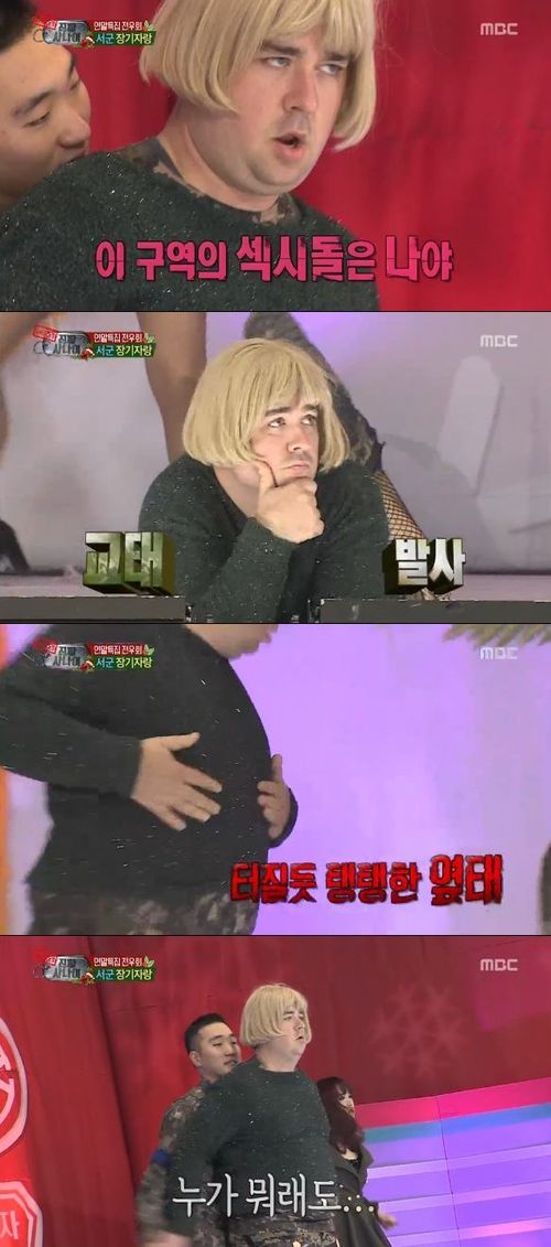 이어 몹쓸(?) 교태와 발 동동 구르기 등의 안무를 소화, 장병들을 경악케 만들었다.