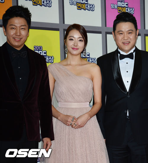29일 오후 서울 여의도 MBC 로비에서 2013 MBC 방송연예대상의 포토월 행사에서 김수로 소이현 김구라가 포토타임을 갖고 있다.