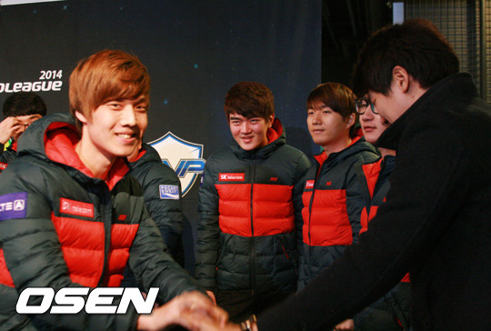 SK텔레콤은 29일 서울 서초구 서초동 넥슨 e스포츠 아레나에서 열린 'SK텔레콤 스타크래프트2 프로리그 2014시즌' MVP와 개막전서 정윤종 어윤수 원이삭으로 이어지는 막강 라인업으로 3-0 완승을 거뒀다.