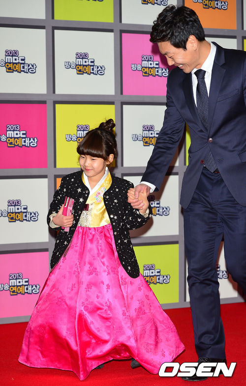 29일 오후 서울 여의도 MBC 로비에서 2013 MBC 방송연예대상의 포토월 행사에서 송종국과 송지아가 레드카펫을 밟고 있다.