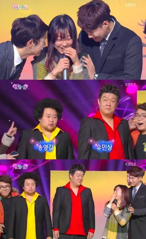 그리고 여성 관객은 두 사람 중 한 명을 택해야 하는 상황에 처했다. 그의 선택은 유민상이었다. 그러자 유민상은 환호를, 송영길은 좌절을 보여줘 웃음을 자아냈다.