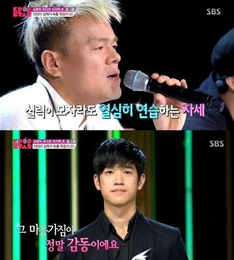박진영은 "속으로 포기했었다. 고음을 내는 법을 모르고 있었다. 15~16살 친구가 발성을 고치는 것과 25살 친구가 고치는 건 완전히 다른 일이다. 완전히 고치진 않았지만 옳은 방향으로 갔다. 자세가 감동이다. 이 대회와 상관없이 JYP에 언제든지 오라"고 칭찬했다.