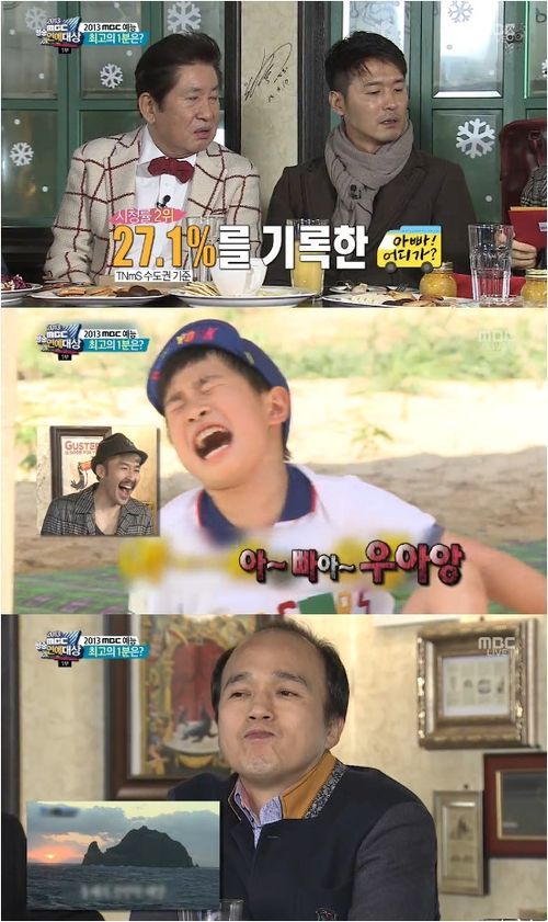 그 결과 26%가량을 기록한 ‘무한도전’ 가요제 정형돈과 지드래곤의 공연이 3위를 나타냈다. 27% 가량을 보인 ‘일밤-아빠 어디가’ 김민국이 텐트 취침 당첨 후 우는 장면이 2위를 했다. 1위는 ‘일밤-진짜사나이’ 독도 일출 장면이었다. 무려 31%를 기록하며 가장 높은 시청률을 보였다.