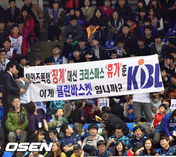 지난 17일 전주실내체육관에서 팬들은 “헤인즈 폭행 ‘징계’ 대신 크리스마스 ‘휴가’를 준 이게 클린바스켓입니까?”라는 플래카드를 들고 나타났다. 이들은 보안요원의 제지를 받고 즉각 플래카드를 접어야 했다. 하지만 민심은 확실하게 전달이 됐다. 현행 KBL의 징계수위로는 선수들에게 아무런 경각심도 줄 수 없다는 것. 아울러 500만 원이란 벌금도 수 억 원을 받는 선수들의 연봉을 고려했을 때 현실적으로 타격이 되지 못한다는 점이다.