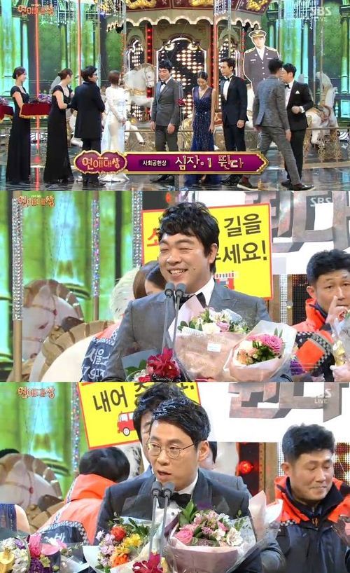대표로 나선 이원종은 "사실 연예대상에서 사회공헌상은 쉽지 않다. 마치 억지로 만들어 준 것 같은 느낌도 있다"며 "그렇지만 열심히 하라는 뜻으로 받아들이겠다. 전국 3만여 소방관들이 있고 그들의 가족들이 있다. 그들에게 영광을 나눠 드리고 싶다"고 말했다.