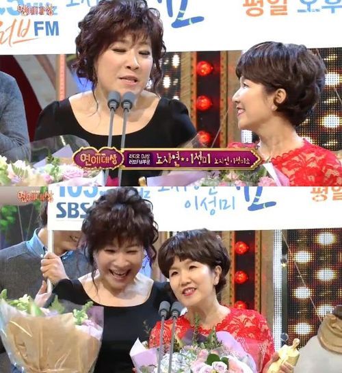 노사연, 이성미는 30일 오후 서울 상암동 SBS 프리즘타워에서 열린 2013 SBS 연예대상에서 '노사연 이성미쇼'로 러브FM부문 라디오DJ상을 수상했다.