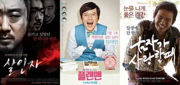 2014년 1월 극장가에는 스릴러 '살인자'의 마동석, 새해 첫 코미디 '플랜맨'의 정재영, 황정민이 뜨끈한 멜로로 돌아온 '남자가 사랑할 때' 등이 선보인다. 이런 연기파 배우들이 다양한 캐릭터로 관객들을 만날 예정.