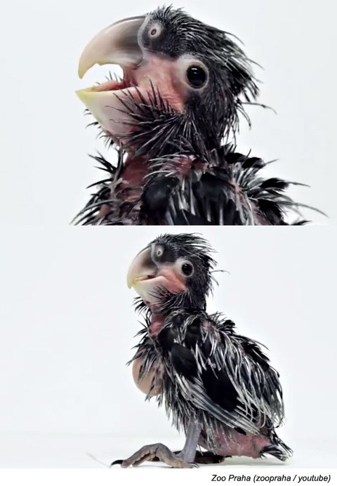 갓 부화한 이 앵무새는 체코 프라하의 동물원에 살고 있는 유황앵무의 새끼다. 호주, 뉴기니가 원산인 이 새의 정식 명칭은 '코카투'로, 골리앗 앵무새로도 불린다. 갓 태어난 앵무새의 모습은 흔히 연상할 수 있는 일반적인 앵무새와는 또다른 묘한 매력이 있다.