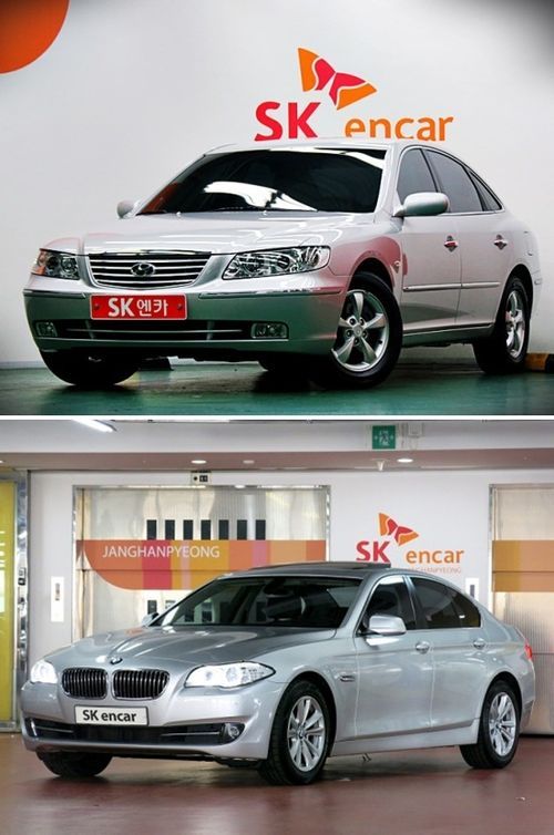 현대 그랜저 TG와 BMW 뉴 5시리즈. /SK 엔카 제공.