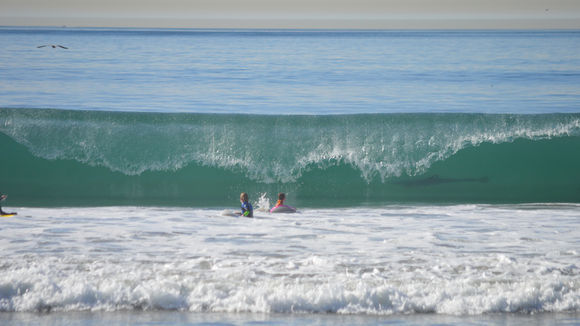 에머슨은 바닷가에서 서핑 중인 자신의 아들 퀸(12)과 그의 친구를 촬영하다가 파도 속 식인 상어의 모습을 포착하고는 소스라치게 놀랐다. 더구나 이 상어 실루엣은 백상아리로 추정되는 식인 상어라고. 이에 에머슨은 "아들에게는 그 물체가 돌고래 일 것이라고 설명해 안심시켰다"고 말했다.