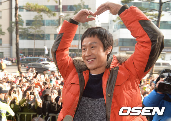 '응답하라 1994'의 '쓰레기'역을 맡았던 배우 정우가 31일 명동에서 프리허그 행사를 갖고 팬들과 취재진들을 향해 인사하고 있다.