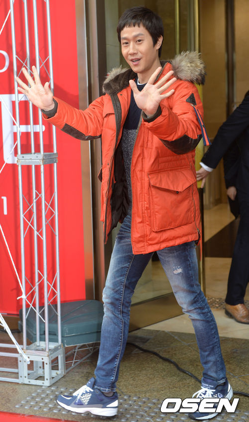 '응답하라 1994'의 '쓰레기'역을 맡았던 배우 정우가 31일 명동에서 프리허그 행사를 갖고 팬들과 취재진들을 향해 인사하고 있다.