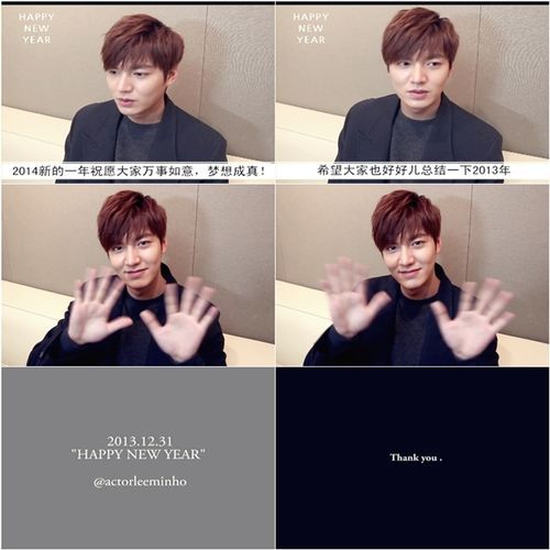 이민호는 31일 자신의 SNS에 새해 인사를 담은 영상을 게재했다. 이 영상에서 이민호는 "저는 개인적으로 올 한해가 간다는 게 아쉽고, 또 돌이켜 보면 그 어떤 해보다 또 많은 것을 느낄 수 있던 한해가 된 것 같은데요. 여러분들도 2013년도 마무리 잘하시고, 2014년도에는 더욱더 원하시는 일, 이루고 싶은 일 꼭 이루길 진심으로 바랄게요. 새해 복 많이 받으시고. 2014년도 다 같이 파이팅 하고 늘 행복하세요. 감사 합니다"라는 말로 진심 어린 새해 인사를 전했다.