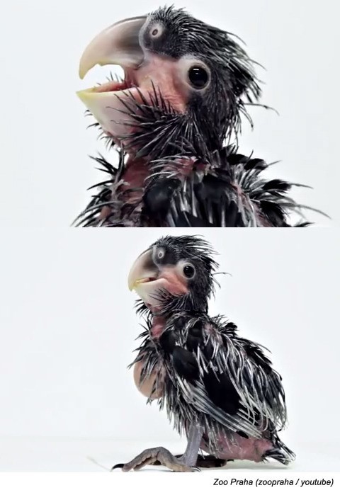 갓 부화한 이 앵무새는 체코 프라하의 동물원에 살고 있는 유황앵무의 새끼다. 호주, 뉴기니가 원산인 이 새의 정식 명칭은 '코카투'로, 골리앗 앵무새로도 불린다. 갓 태어난 앵무새의 모습은 흔히 연상할 수 있는 일반적인 앵무새와는 또다른 묘한 매력이 있다.