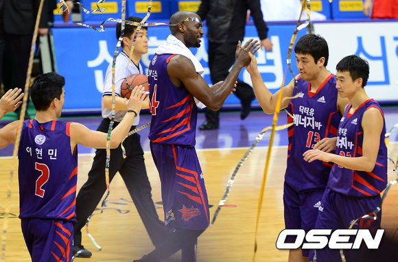 경기후 승리한 오리온스 선수들이 승리를 기뻐하고 있다./jpnews@osen.co.kr