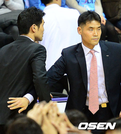 경기후 오리온스 조상현 코치와 모비스 조동현 코치가 인사를 나누고 있다./jpnews@osen.co.kr