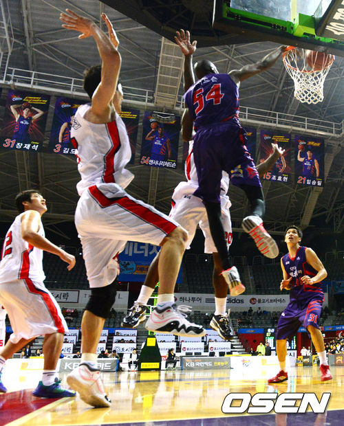4쿼터 오리온스 리처드슨이 모비스 수비를 따돌리고 원핸드 덩크를 성공시키고 있다./jpnews@osen.co.kr