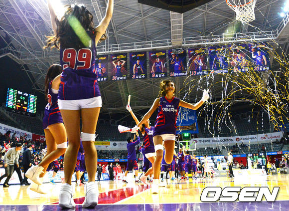 경기후 오리온스 치어리더들이 승리를 기뻐하고 있다./jpnews@osen.co.kr