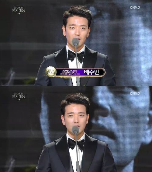 배수빈은 31일 서울 여의도 KBS홀에서 열린 2013 KBS 연기대상에서 남자 조연상을 수상, "못된 짓만 했는데 상을 주셔서 감사하다"며 "혼신을 다해서 연기했다"고 수상소감을 말했다.