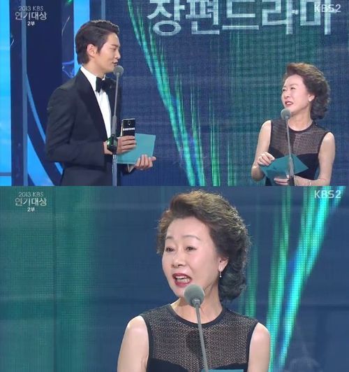 주원과 윤여정은 31일 오후 서울 여의도 KBS홀에서 진행된 2013 KBS 연기대상에서 우수연기상 부문 시상자로 나섰다.