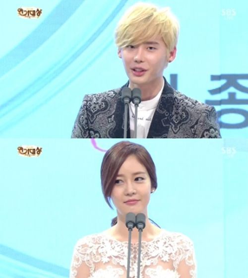 이종석, 성유리는 31일 서울 상암동 SBS 프리즘타워에서 진행된 2013 SBS 연기대상에서 미니시리즈 부문 우수연기상 남녀 수상자로 호명됐다.