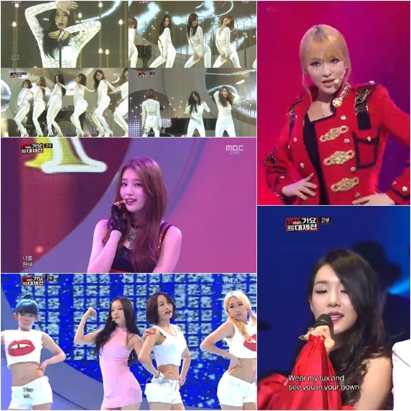 31일 오후 8시 50분부터 생방송으로 진행된 '2013 MBC 가요대제전'에는 걸그룹 크레용팝과 티아라, 에이핑크, 시크릿, 씨스타, 에프엑스, 애프터스쿨, 카라, 그리고 소녀시대 등 활발하게 활동한 걸그룹들이 총출동해 다양한 무대를 꾸몄다.