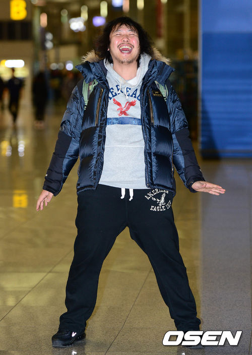 육중완이 취재진을 향해 포즈를 취하고 있다.