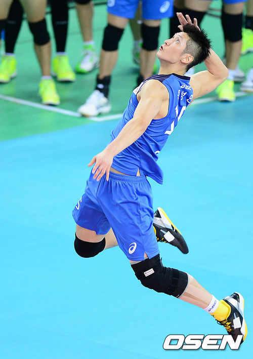 2세트 현대캐피탈 문성민이 서블를 하고 있다.