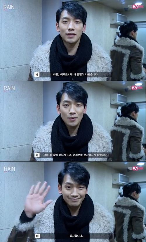 비는 1일 Mnet 유튜브 채널을 통해 “2014년 갑오년 새해가 밝았습니다. 여러분 2014년 하는 일 모두 잘 되시기 바라고, 모두 다 부자 되는 한 해가 됐으면 좋겠습니다”라며 새해 덕담을 건넸다.