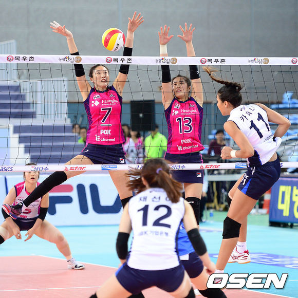 3세트 IBK기업은행 카리나가 흥국생명의 블로킹 벽을 피해 공격을 시도하고 있다./sunday@osen.co.kr