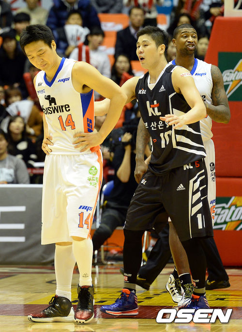 연장전, KT 송영진에게 파울을 범한 전자랜드 이현호가 아쉬운 표정을 지으며 코트를 빠져나가고 있다. /ouxou@osen.co.kr