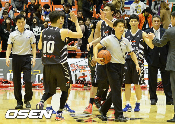4쿼터, 역전에 성공한 KT 선수들이 인사를 나누고 있다, /ouxou@osen.co.kr