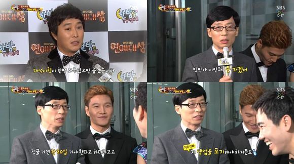 이날 김병만은 유재석을 향해 "정글에 한 번 와달라. 진정한 리더가 필요하다"고 러브콜을 보냈다. 이에 '한밤' 리포터가 유재석에게 이 러브콜을 전하자 유재석은 "미안, 못가겠어"라고 거절, 눈길을 끌었다.