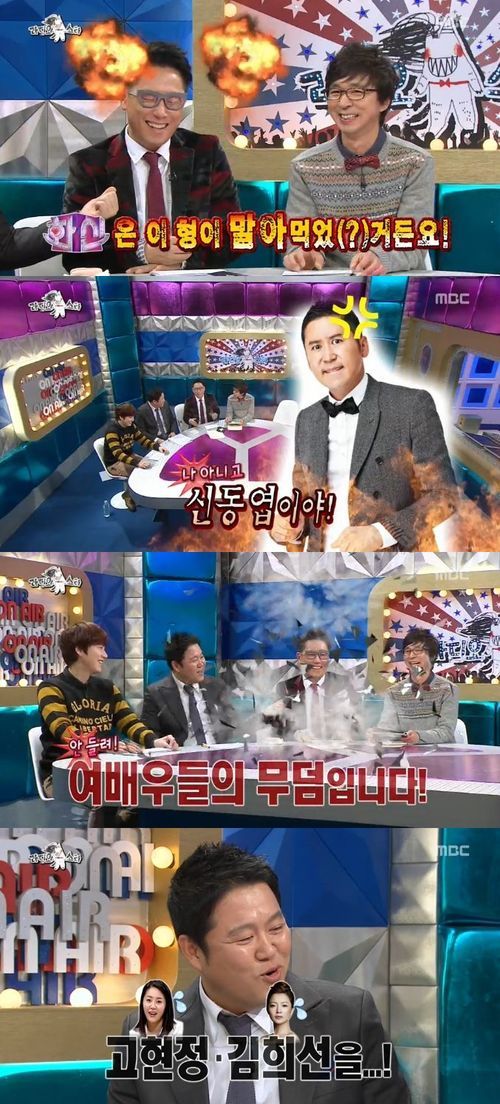 이에 윤종신은 억울한 듯 "신동엽이 말아 먹었다"라고 물귀신 작전을 펼쳤고, 김구라는 다시 "윤종신은 여배우 무덤이다. 고현정, 김희선도 말아 먹었다"라고 돌직구를 날리며 윤종신을 당황케 했다.