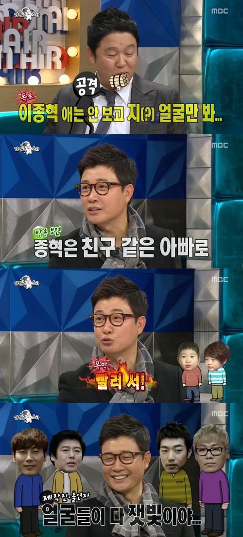 이에 김구라는 "(김성주가) 이종혁 얘는 애를 안보고 지 얼굴만 본다고 했다"라고 폭로해 김성주를 당황케 했다.
