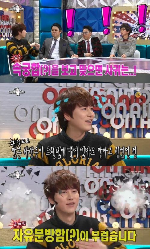 규현은 1일 오후 11시 15분 방송된 MBC 예능프로그램 '황금어장 라디오스타'(이하 '라스')에서 스킨십에 대한 이야기를 나누던 중 "아는 여자 분의 이야기인데 그분은 속궁합을 봐서 맞으면 사귄다더라"라고 말문을 열었다.