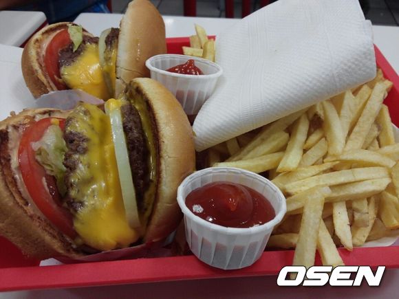 류현진(27)의 LA 다저스 입단협상이 한창이던 2012년 12월, 한국 야구팬의 눈을 사로잡은 한 장의 사진이 있으니 바로 '인앤아웃' 햄버거다. 류현진은 당시 손에 햄버거 하나, 그리고 접시에 담긴 햄버거 3개 등 모두 4개의 햄버거를 모두 한 자리에서 먹었다는 의혹(?)을 받았다.