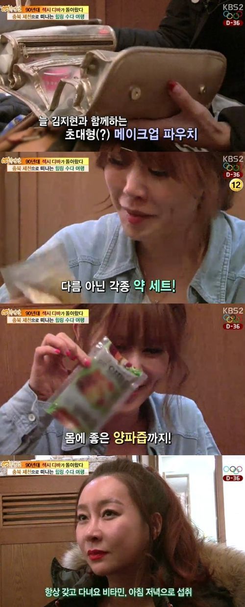 특히 김지현의 큼직한 가방 속에는 초대형 메이크업 파우치와 두툼한 약봉지가 있었다.