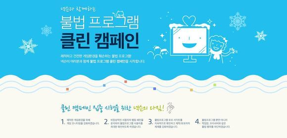 넥슨이 새해에 쾌적하고 건전한 게임환경 조성에 나선다. 넥슨과 넥슨네트웍스는 2014년 새해를 맞아 ‘불법 프로그램 클린 캠페인’을 오늘부터 2월 28일까지 실시한다고 2일 밝혔다.