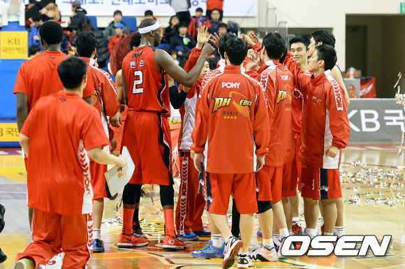 경기종료, 승리한 모비스 선수들이 기뻐하고 있다. /ouxou@osen.co.kr